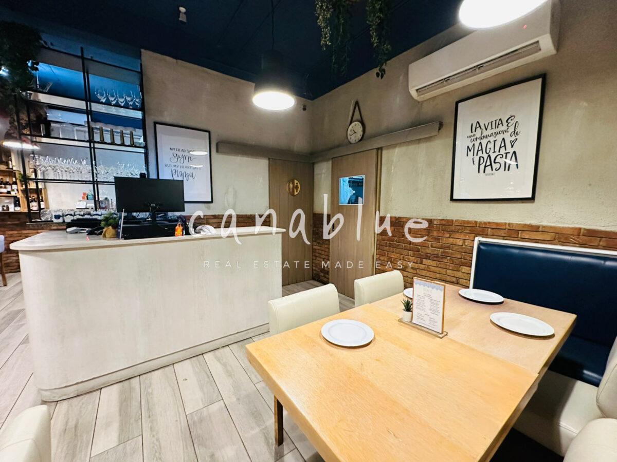 With 80 m² of interior space, the restaurant includes all inventory, furniture, and equipment, making it ready for immediate operation. The layout features a comfortable dining area, a fully equipped kitchen, and one bathroom, ideal for a small to mid-size food or beverage concept.