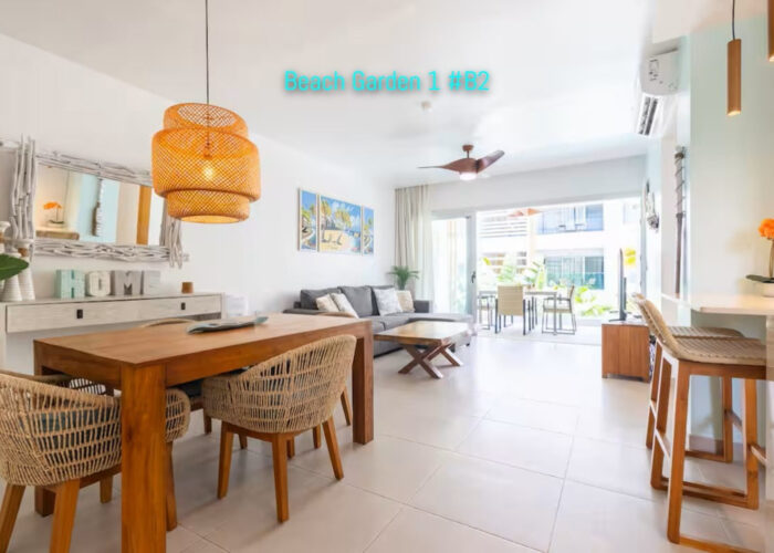 The unit features a functional layout with a bright living and dining area, ideal for everyday living or vacation stays. Residents also enjoy access to a shared pool and the relaxed tropical atmosphere of Beach Garden.